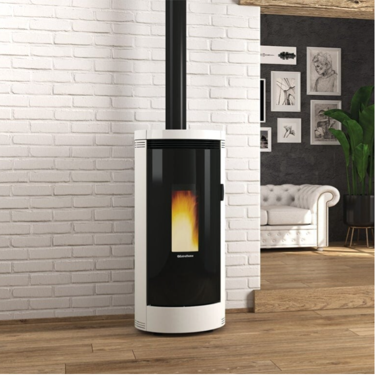 Poêle à granulé 10kw Réservoir de stockage 30kg. Existe également en rouge et noir